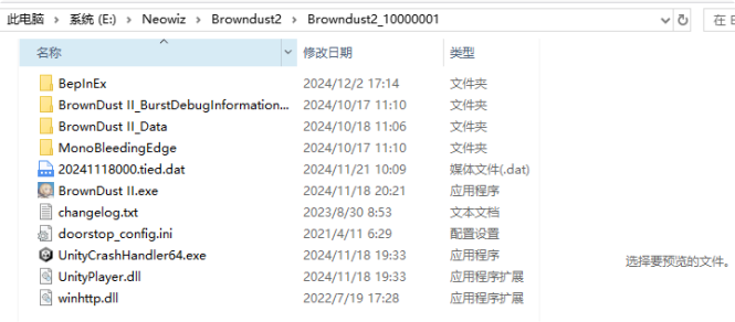 解压后是这 4 个东西 ,将其复制到游戏根⽬录 ,就是那个 browndust1000001